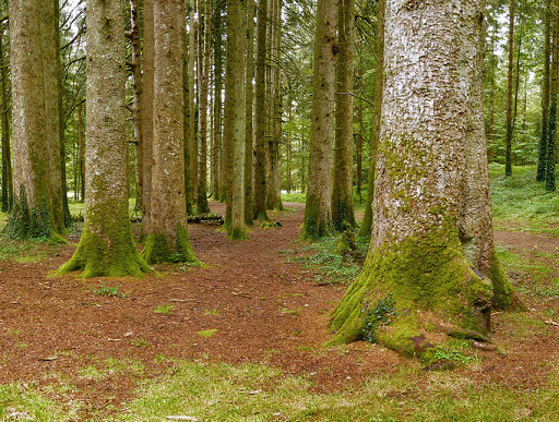 Un bosque cuyos árboles de altos troncos y densas copas han creado un techo natural por el cual unos rayos de sol llegan a pasar, convirtiendo este lugar en un espacio único.
